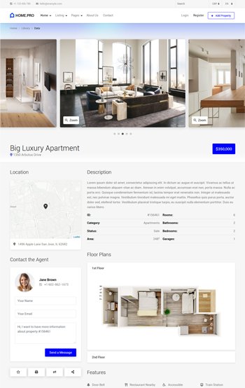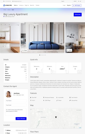 MyHouse is the first template that brings not just a Google Maps, but also OpenStreetMap, MapBox, Here Maps and Bing Maps support.